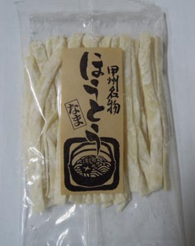 ほうとうを造り続けて40年の「ほうとうのしむら」が自信をもってお勧めする生ほうとうです。麺は手もみ風で、合成保存料など一切使用せず、また食塩も一切使用しておりませんので、小麦粉本来の風味と味わいをお楽しみいただけます。