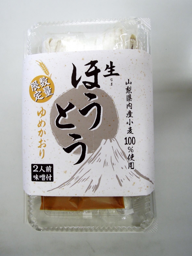 山梨県に製粉工場を有する「はくばく」様より提供された、小麦(品種名:ゆめかおり)だけで丁寧に製麺した「生ほうとう」です。数量限定となりますので、お早目にご注文ください。今回は、お試し価格690円(税込)です。